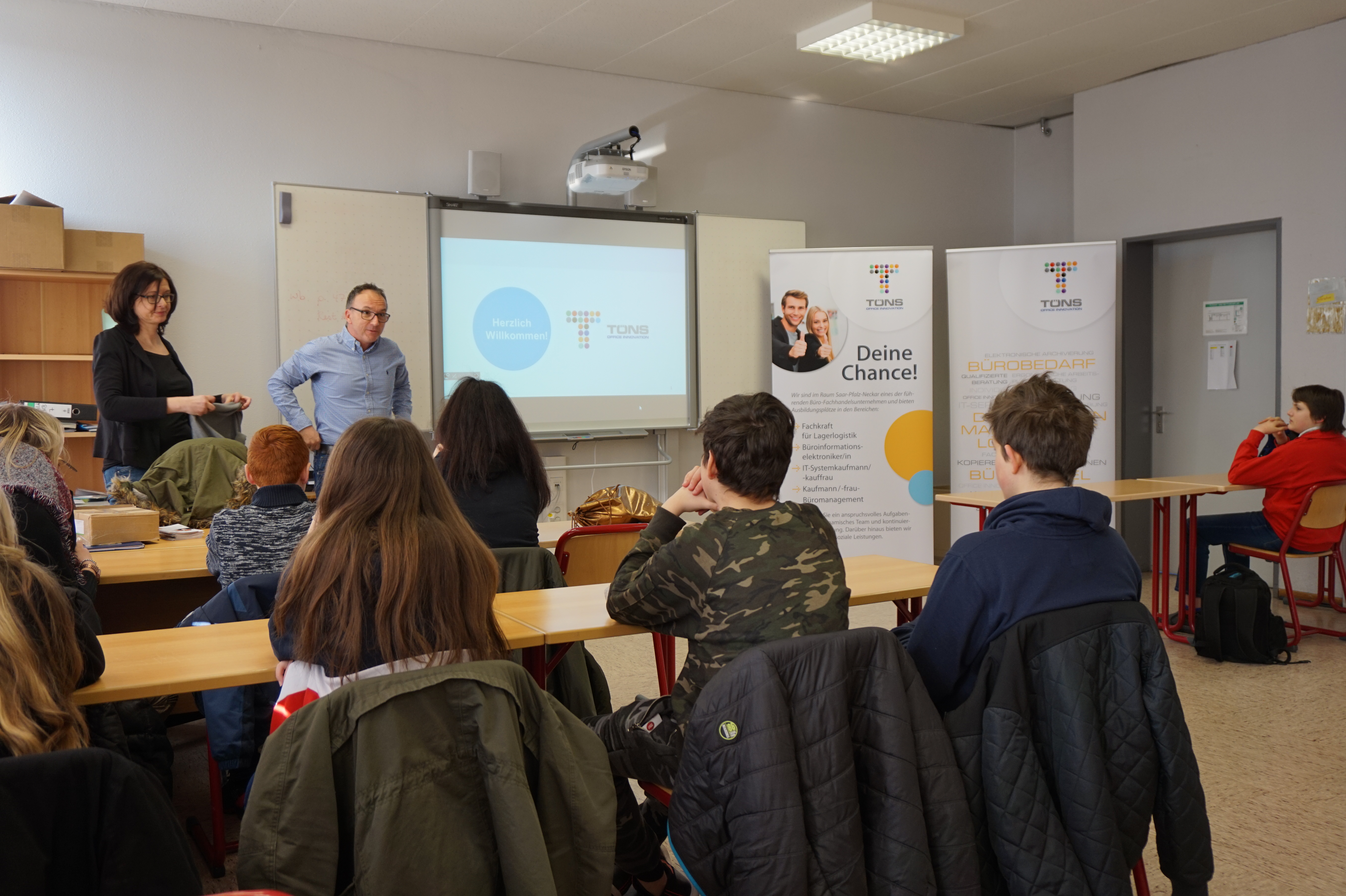 Einblicke in die Berufe Lagerlogistik und Kauffrau/mann Büromanagement, Kauffrau/mann E-commerce wurden durch den Geschäftsführer der Firma TÖNS Herrn Andreas Thomann vermittelt.